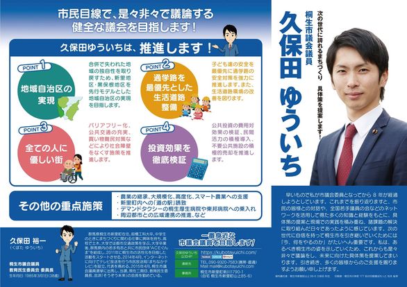本日の朝刊に選挙公報が折り込まれました。また、同じく久保田ゆういちの公営チラシが新里町内に折り込まれています。お手元に届きましたらぜひご覧下さい。