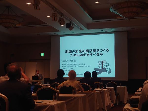 初日となった7月18日(火)は(株)日本総合研究所 主席研究員である藻谷浩介 様による基調講演「地域の未来の商店街を創るためにはなにをすべきか」からスタート。昭和の日本で商店街に人が集まった要因、平成の日本で商店街が衰退した要因を紐解きながら、商店街のような場が令和に再生されていくとすれば、その要因はどのようなものかを考察していく内容です。これまでの都市の拡大により、低密度開発地の経済ポテンシャル低下、徒歩&公共交通の再評価、チェーン店に勝つローカルビジネスが増えていること、“共生欲求”の再評価などを踏まえて、これまでのまちづくりとは逆向きのトレンドが起こっていくことを先回りして捉えていくことの重要性をお話しいただきました。商店街の地権者がこの新たな風に乗るには、旧商店街に低層住宅を増やし、シャアオフィスやカフェを入れ、学校などの再導入を図ること、車がなくても生活できるモデルを商店街周辺で確立して発信していくことなど具体的な事例もお示しいただき、これまでの常識に捕らわれないチャレンジが必要だと改めて感じます。