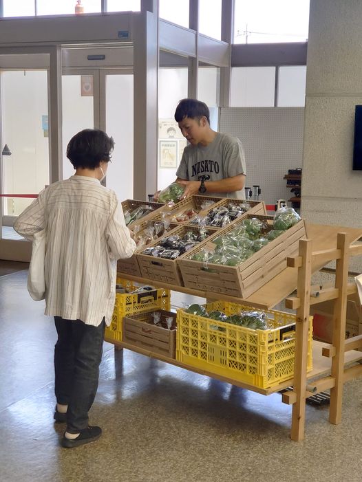 地域おこし協力隊の小野隊員が、新里産農産物のPRを目的として企画したもの。今が旬のナスやキュウリ、ミニトマト、ブロッコリーがお手頃価格で並びます。売り切れ次第終了。お近くの方は是非お越しください。