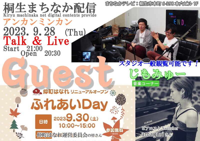 2011年11月のスタートから134回目となるアンカンミンカンの「桐生まちなか配信」は明日(9月28日[木])開催です。