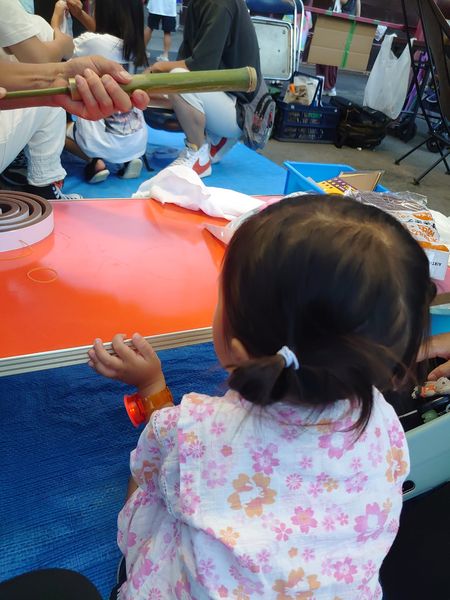 2024-08-29 / 最終更新日時 : 2024-11-27 久保田裕一 活動報告 アットホームな夜祭り。ながめ夜市 8月25日の夕方は大間々のながめ公園で行われたながめ夜市に家族で寄らせていただきました。大間々の活性化に取り組むままよしプロジェクトが主催するイベントです。竹の水鉄砲作りワークショップや子ども縁日をのんびり楽しみ、我が娘も大満足の様子。 桐生八木節まつりや大間々祇園まつりの賑やかさも良いですが、こういったアットホームなお祭りも良いですね。