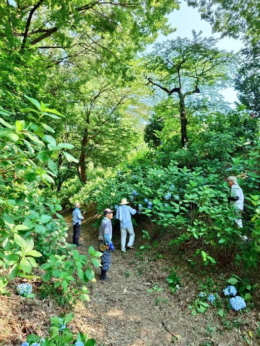 開園以来、紫陽花の名所として市内外から多くの見物客が訪れる山上城跡公園。その手入れのため、17年前より地元有志で紫陽花の剪定ボランティアを毎年行っています。私も参加し始めて早10年が経過しました。