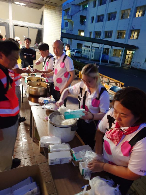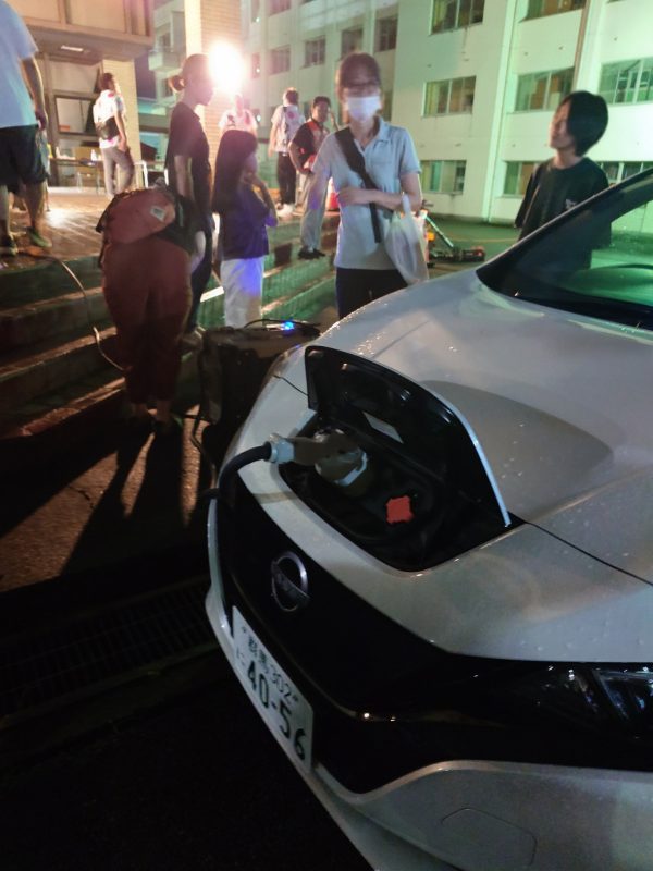 夕ご飯は桐生・みどり子ども食堂ネットワークの皆様によるドライカレーの炊き出しと、子ども達がパッククッキングで作ったご飯でお腹を満たし、共助の温かみを体感。その後、断水や停電などのミッションが次々に発生しましたが、災害用簡易トイレやEVによる投光器への給電などでピンチを乗り越え、公助の大切さも感じていただけたと思います。