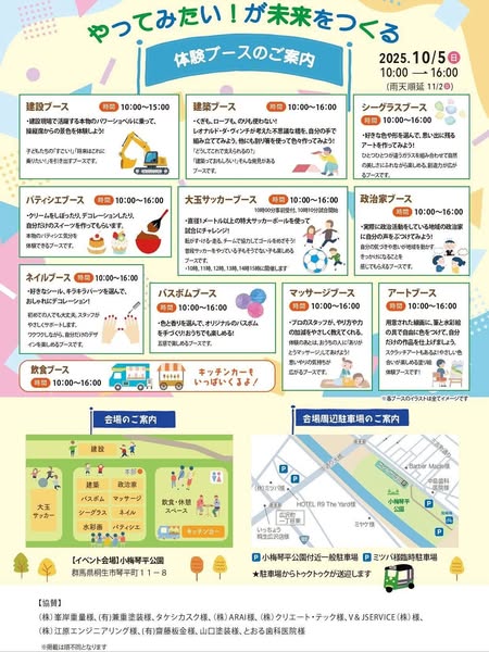 10月5日(日)、小梅琴平公園を会場に「やってみたい!が未来をつくる」が開催されます。
