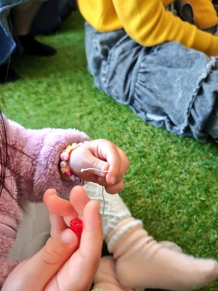 わが娘は大学生の皆様( @gunma_peer )によるワークショップ「ブレスレットづくり」に熱中。自分の分は早々に完成させて、パパの分も作ってくれました。あまりに独創的すぎる娘のセンスにみんなの笑顔が溢れ、楽しいひと時を過ごすことができました。