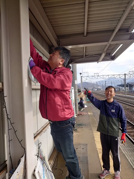 下新田駅イルミ撤去作業終了。わ鐵を未来に繋ぐ」