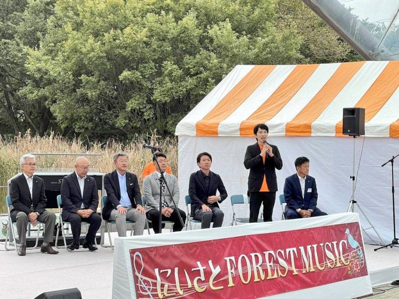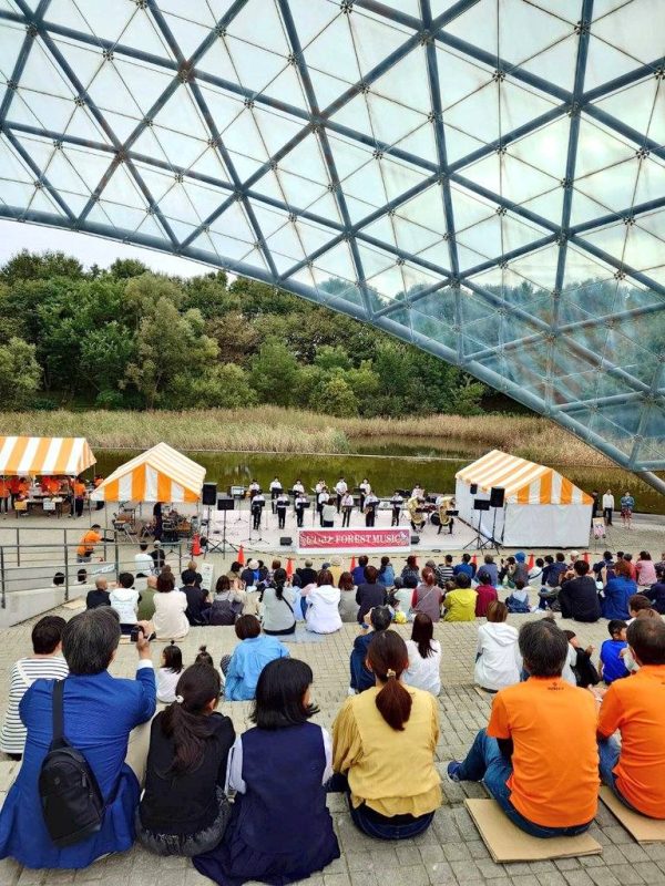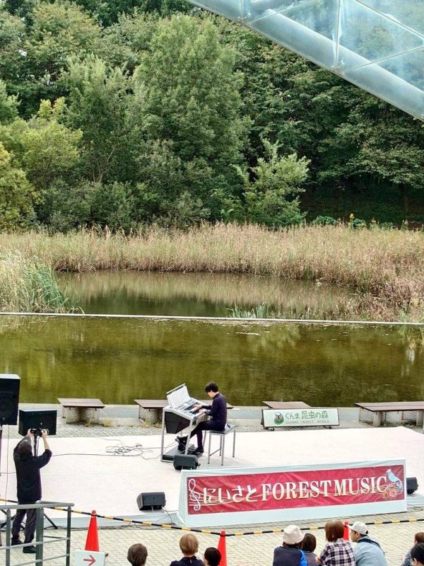 少し前の話題となりますが、19日は県立ぐんま昆虫の森で開催された「にいさとフォレストミュージック」に新里商工会青年部員として設営から撤収まで参加してきました。安藤忠雄氏設計の全天候型ドームの下で行う貴重なイベントです。何かといつも一緒にいる金子勇人さん(エレクトーン奏者の)の演奏からスタートし、恒例の新里中学校吹奏楽部の演奏から、ノスタルジクス、そして和太鼓サムウェイズの皆さんと素晴らしい演奏を繋いでいただき、森の中に心地よい音楽が響き渡る半日となりました。