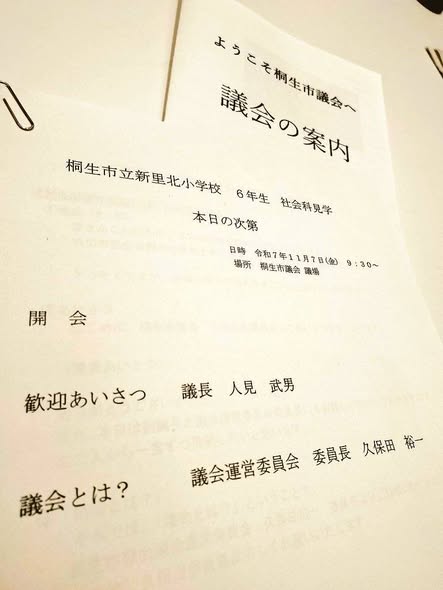 7日(金)の朝は新里北小学校の社会科見学からスタート。6年生の皆さんが桐生市議会の議場にお越しになり、議会運営委員長として「議会」について簡単に説明させていただきました。
